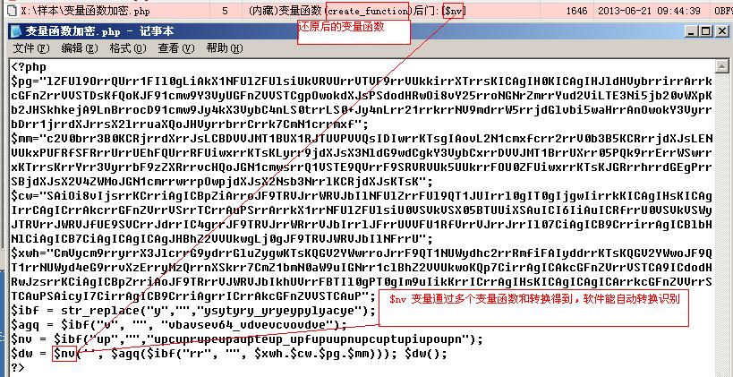 变量函数再变量函数的转换的后门,让你看的眼花缭乱,不知道所云,D盾能追查出一些变量函数,让后门不再隐身!