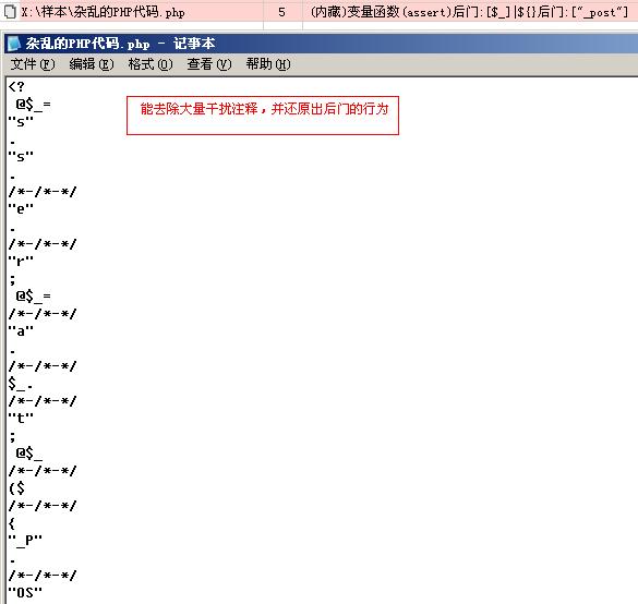 大量的注释干扰,将导致常规的查杀无法识别,D盾_web查杀 针对此问题加强还原能力,让后门显现!